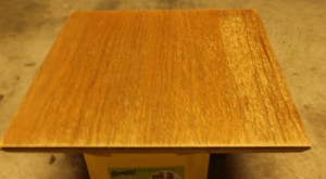 - Apply the gel stain. The gel stain needs to be stirred pretty thoroughly first. I used a combination of a stain brush and old rags to apply, depending on how much surface area I was covering. I found that it was important to make sure the stain was applied very thin or it might not adhere when the polyurethane was applied. To do this, I used a rag to wipe off the excess stain a few minutes after I had applied the stain. This tended to be more of an issue when using the brush. The gel stain is a bit more work to apply than liquid stain, but it stays where you put it so you don’t have to worry about drips, which is especially helpful when staining the parts of the cabinets fixed to the wall.