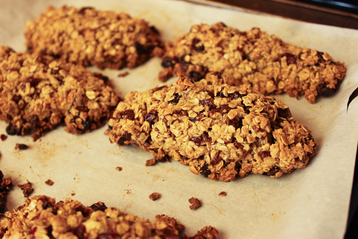 While it’s good that I’m consuming calories through my sports drink, it’s also necessary to eat. Previously, I would usually eat my favorite Clif Bar during a ride (the peanut butter pretzel mojo bar) and maybe some honey stinger energy chews, both organic / natural products. I still eat these but decided to try eating even simpler foods during my ride to help out my stomach. I’ve lately been packing a back of pretzels along with some granola bars I made myself. To make the granola bars, I mixed and matched two recipes, one from gettin’ fresh and another from Kitchen Konfidence.