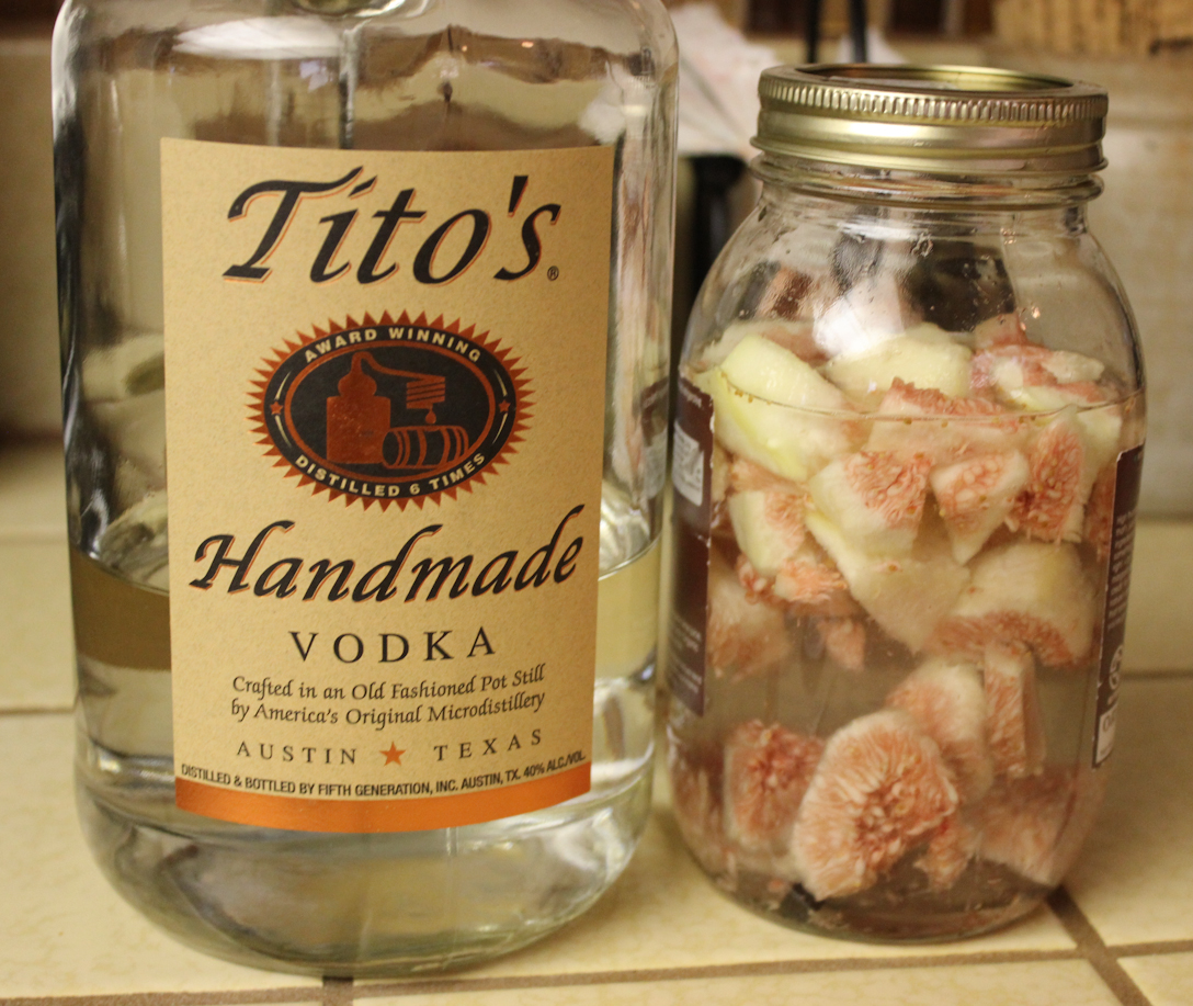 For this, I peeled and chopped figs, added them to a mason jar along with a split vanilla bean, and covered them with Tito’s Vodka. I let the mixture marinate in the fridge for two weeks before straining out the figs. We tried one drink recipe with the vodka but it wasn’t super good. Anyone have good fig drink recipes? Please let me know in the comments!