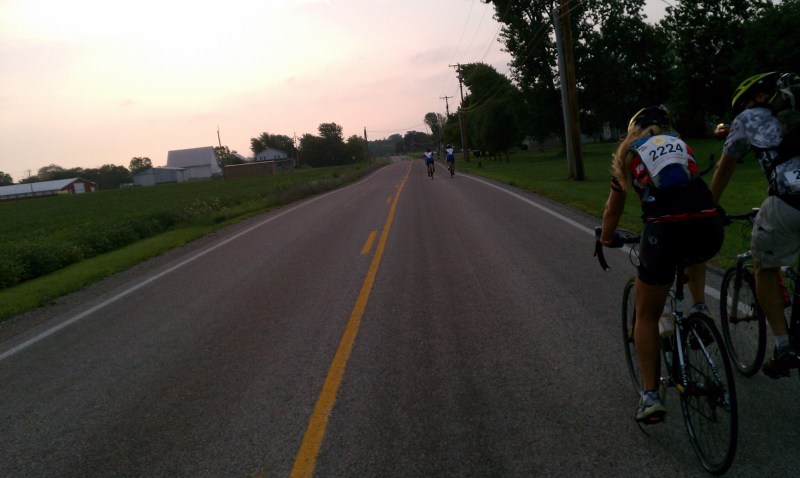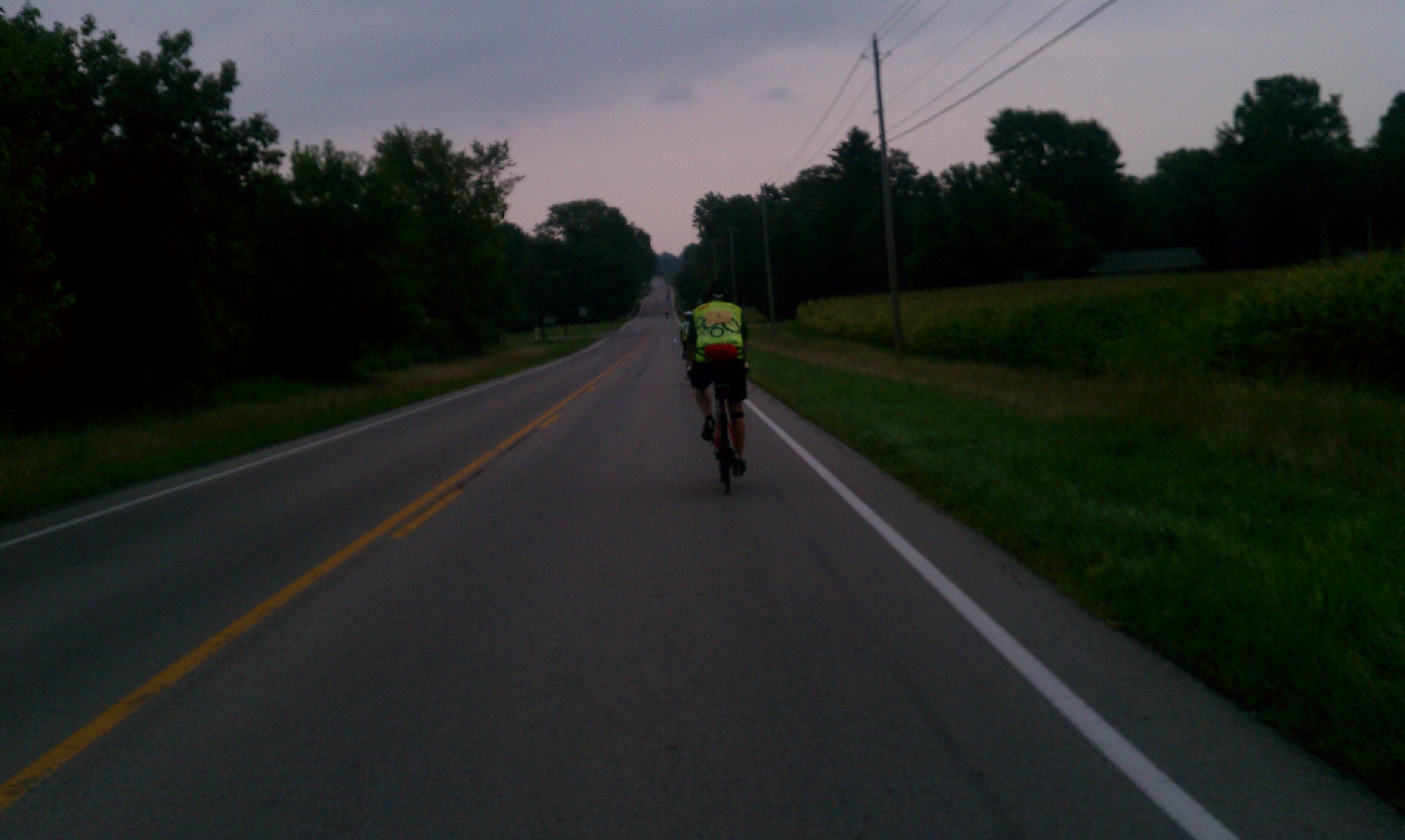 I proceeded to ride through many roads extremely familiar to me, even going by houses of friends from high school as we cut across Lagrange, Ohio, my hometown for a number of years. During this section, I got caught up in a friendly pace group and was making great time. I lost them at the lunch stop because I continued to the next rest stop where my crew was waiting for me again.
