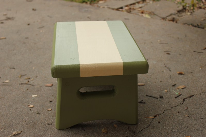 I was wandering through Joann Fabrics not too long ago with an extra 40% off coupon in my pocket when a short little wooden foot stool caught my eye. Ever since moving into the new house, I’ve wanted something to help me reach the top shelves in the pantry without having to drag out our folding step stool. I quickly brought the foot stool home with me and got to work finishing it.