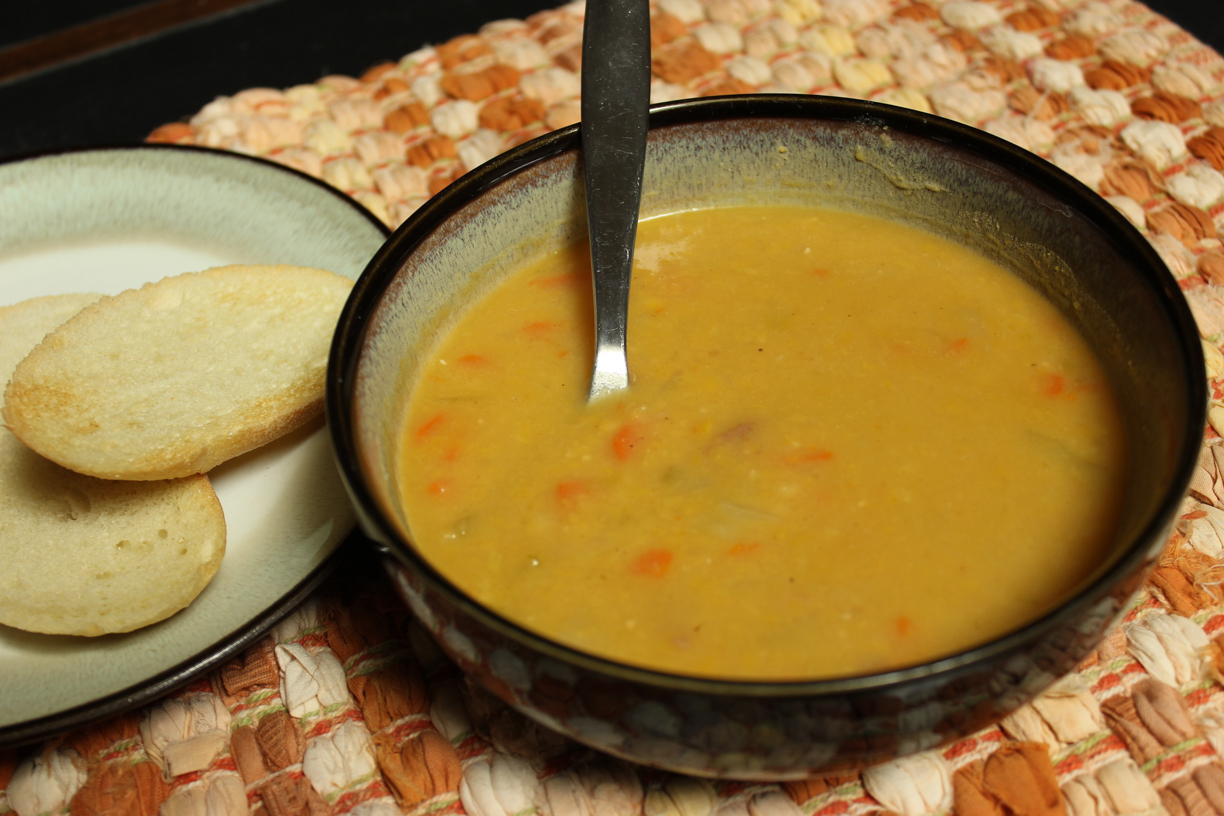 This fall I realized that I love split pea soup, whether from a can of Amy’s or from the cafe in Whole Foods. Christmas leftovers gave me just what I needed to try making it at home. After reviewing a few recipes, I decided on this Cooking Light recipe. I used yellow split peas instead of green, leftover ham from our Whole Foods spiral sliced him, added some green onions because I had them, and omitted the lemon juice. I think this soup could easily be made without ham. The only item I had to get at the store was the split peas. A delicious way to use up leftovers.