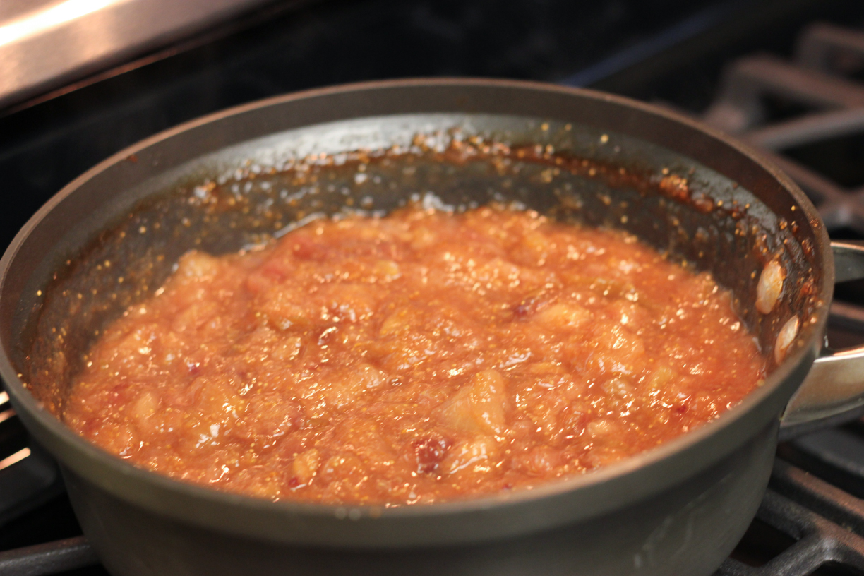 After chopping, I put the figs in a saucepan with some white sugar. I went easy on the sugar because I know many times jams and preserves turn out super sweet.