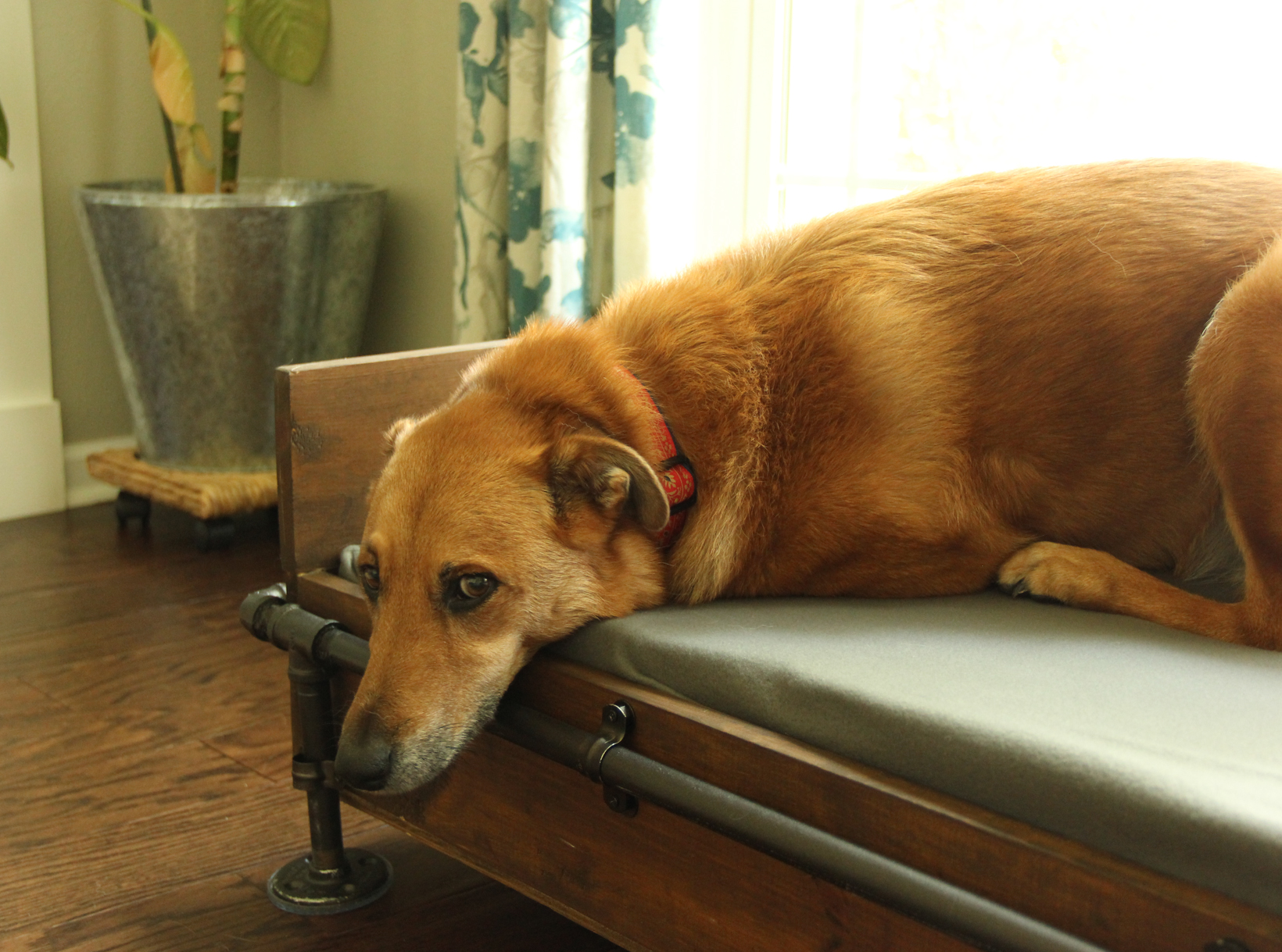 I think I finally completed the last of my tasks to make my dining and sitting room renovations complete! That task was to make a new cushion for my dog’s awesome window bed (which I made myself). Since I made the bed, she (and the cats) have been sleeping on an old dog bed that I made in our other house. It is a fleece cover with two bed pillows inside, covered by a layer of eggshell foam. It does the job, but the cover is the wrong color now and it has a large indent in the center from use. I bought new gray fleece and nice thick green foam from Joann Fabrics quite some time ago. I kinda can’t believe I waited this long, as it took me less than an hour to make her the new cushion. What a bad dog parent I am.