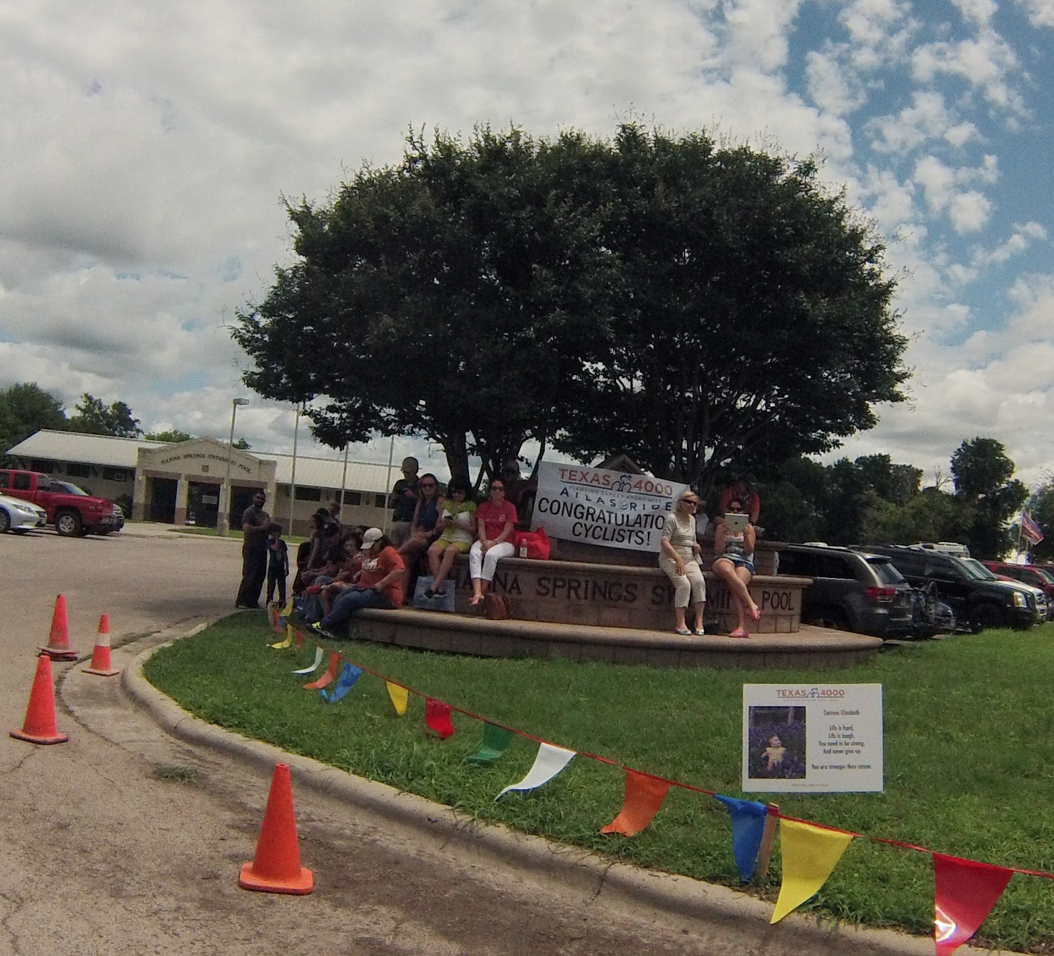 The ride end was moved this year from the Texas Legato Winery to a park in Lampasas due to the heavy rains we’ve been receiving. The last mile of this ride is always the hardest, no matter the distance. People can sponsor signs of their friends and family that have or had cancer. I try to read each sign and it always makes me tear up. It really underscores the great fundraising work these UT students are doing on their ride to Alaska.