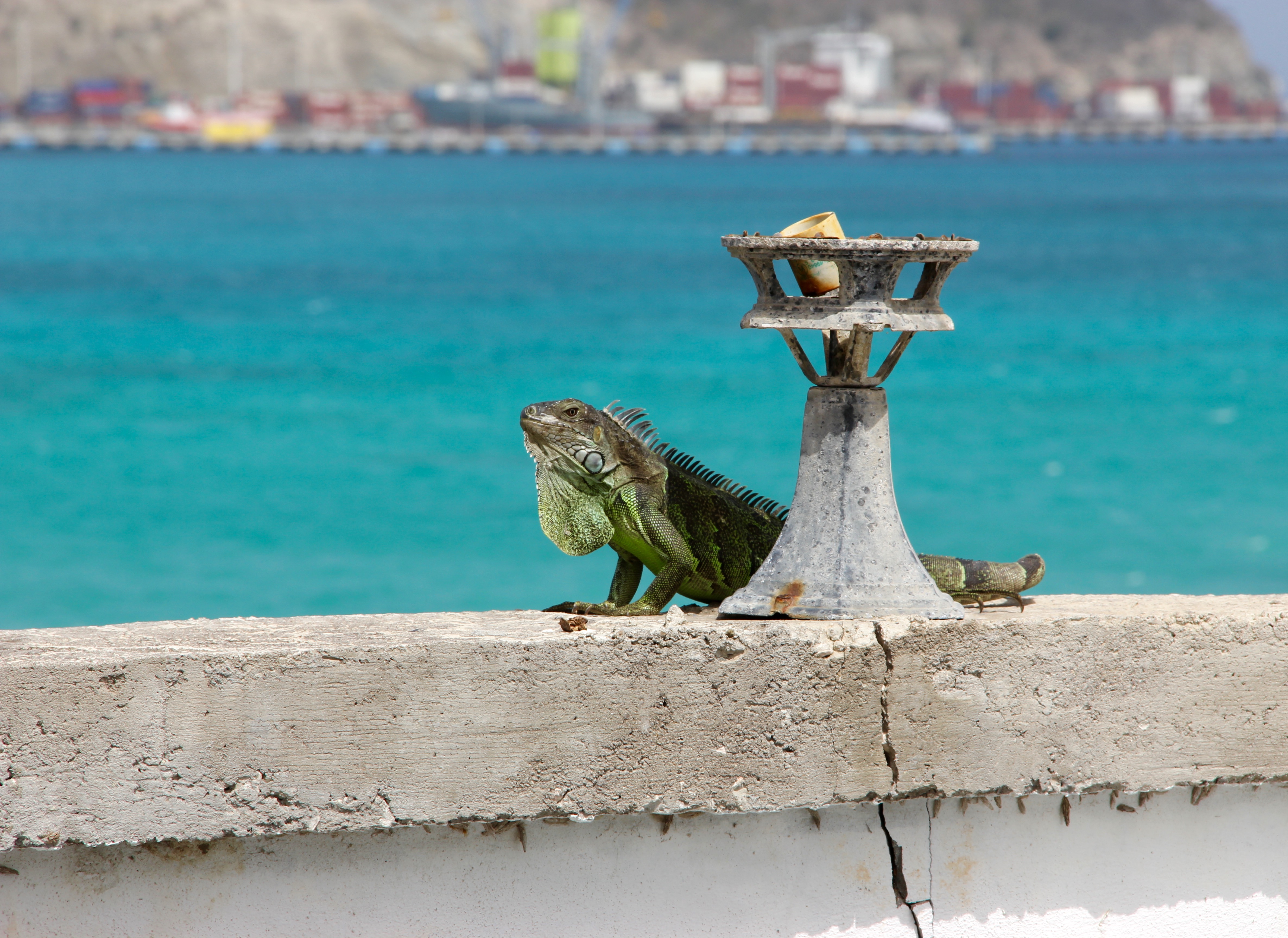 We next looped around by Mullet Beach and Simpson Beach, but parking near both was overflowing so we didn’t stop. However, we were able to stop at Little Bay Beach, where I took my first iguana photo. The beach itself was very nice so we decided to come back.