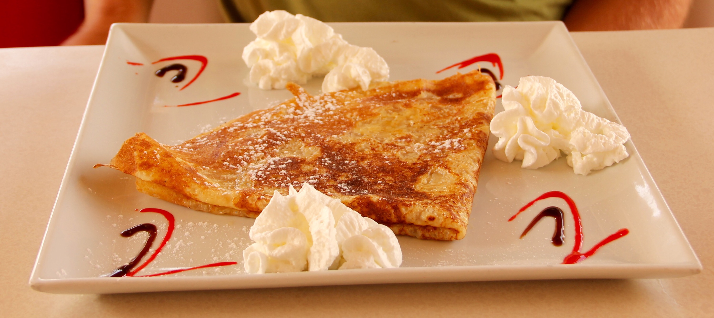 Carl loves crepes and I finally talked him into a breakfast crepe. He had one with apricot jam.