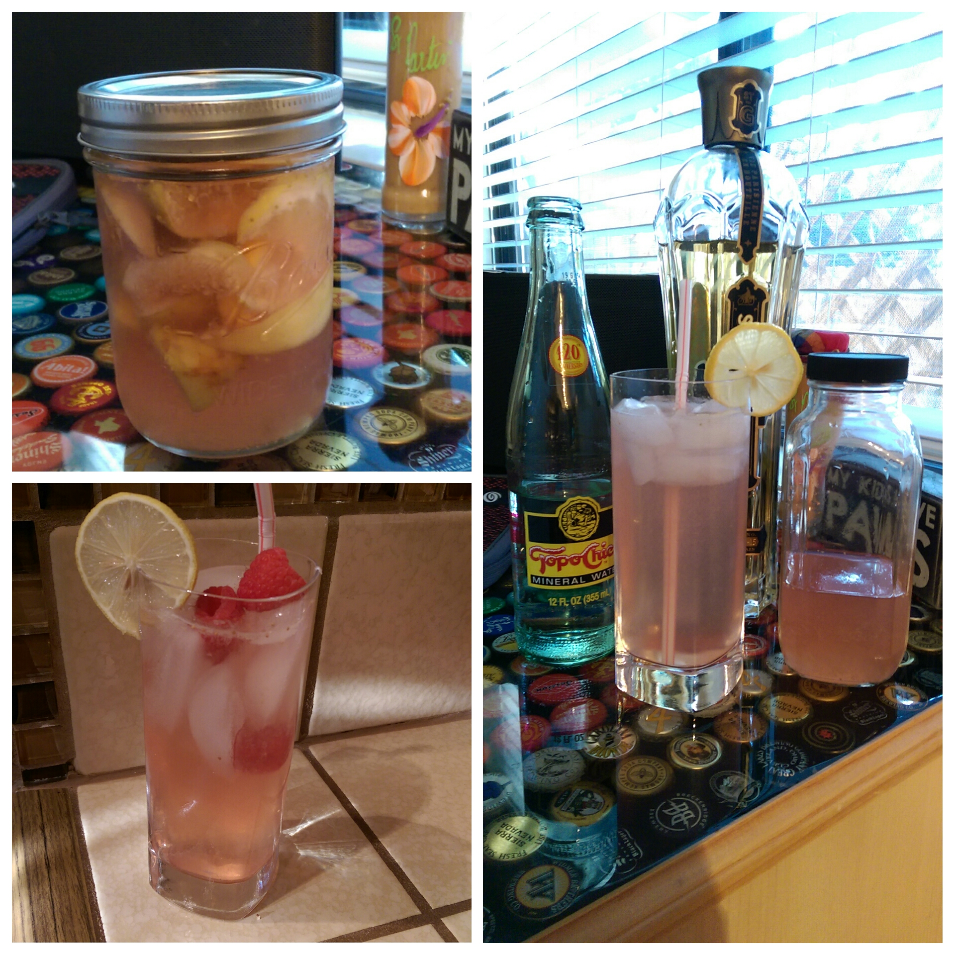 The drink was the rum, Topo Chico, St. Germain, and a squeeze of lemon garnished with a lemon slice and some raspberries. Out of all the infusions I’ve made, this one may well be my favorite. Just in time for tiki week, too!