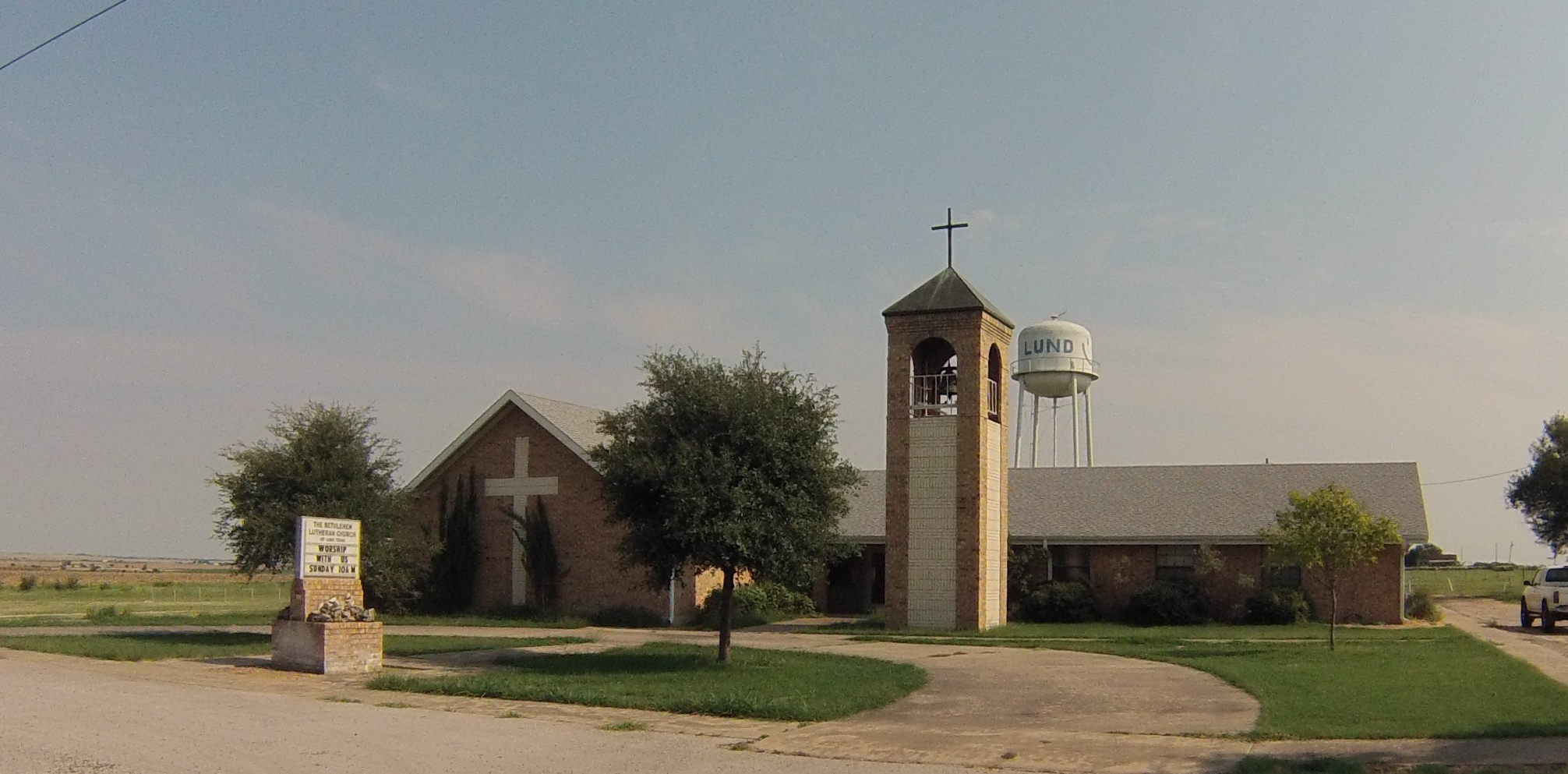Small town church and water tower in Lund, TX.
