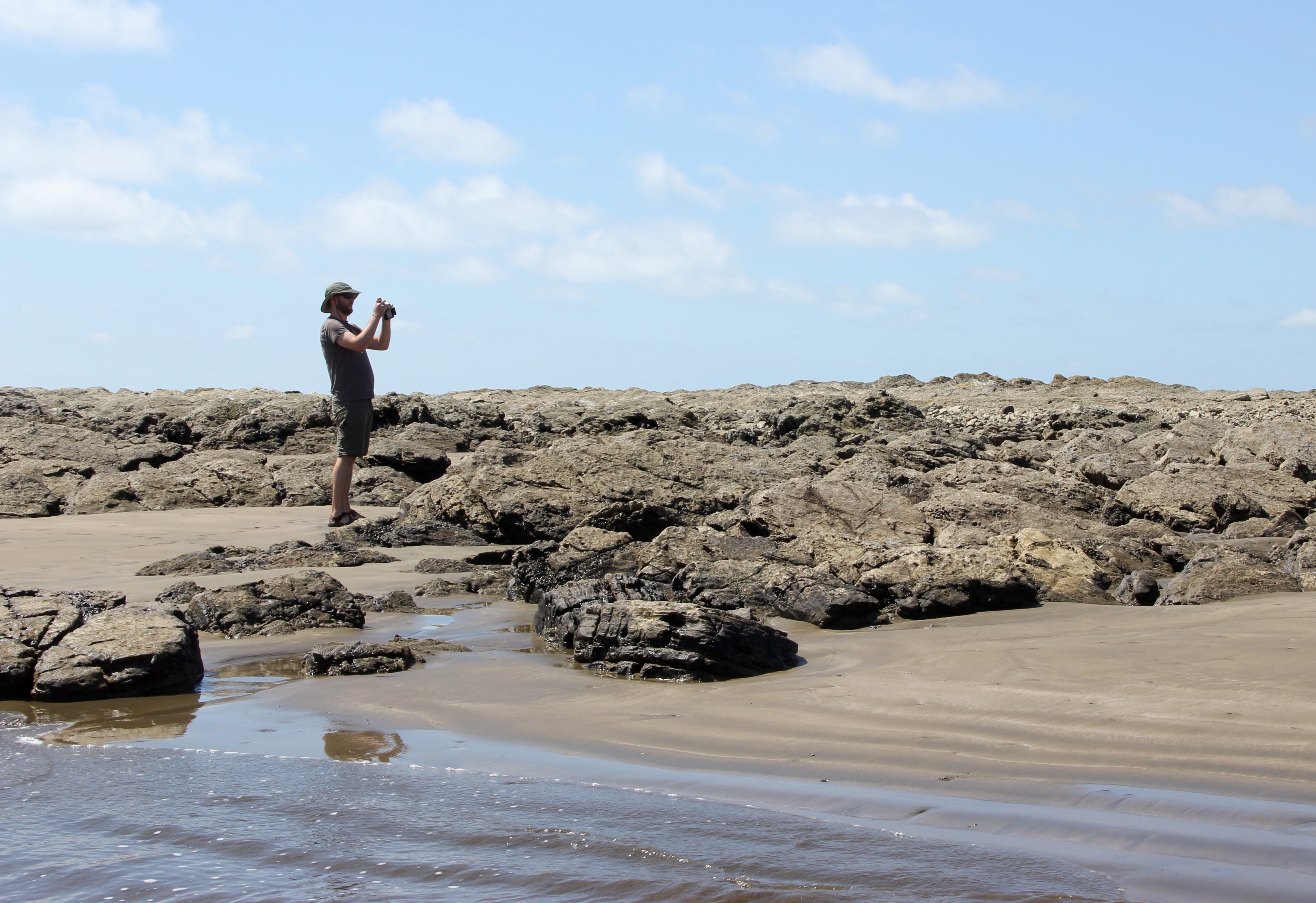We then drove down to Uvita to visit Ballena Marine National Park and walked along the expansive beach to Isla Ballena, a small little sand bar type island only accessible during low tide. During low tide when the sandbar and connecting sand bridge is visible, it’s shaped like a whale’s tail – hence the word Ballena! Well, they also say that whales migrate past this beach in the winter, so maybe that’s also a contributing factor.