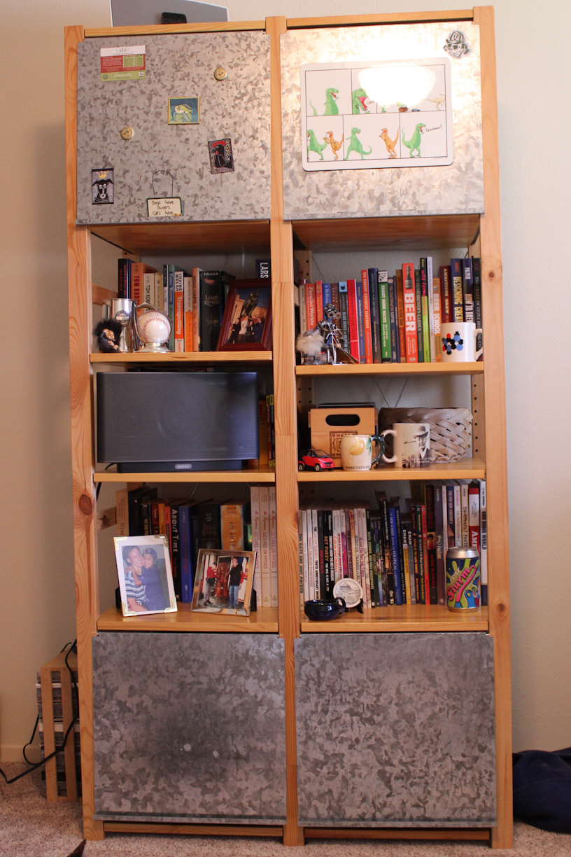 A few Google searches later and I knew there were a variety of furniture options I could purchase to hide litter boxes. I also knew that they were pricey, leading me to decide make my own. A few days of watching Craigslist and a trip to the Salvation Army later, I scored two solid wood furniture pieces that worked in our house and were big enough to conceal a litter box for about $90 total. I couldn’t even purchase an already made piece of furniture for twice that cost. Once the furniture was home, we put in the litter boxes for a few weeks and left one of the cabinet doors open so that the cats would get used to the new digs. Probably only needed to do it for a few days, but we were still busy unpacking.
