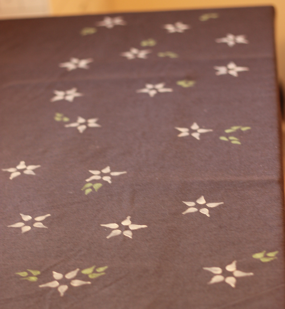 I then used my stamp set and fabric paint to hand stamp a design down the middle of both pieces of fabric.