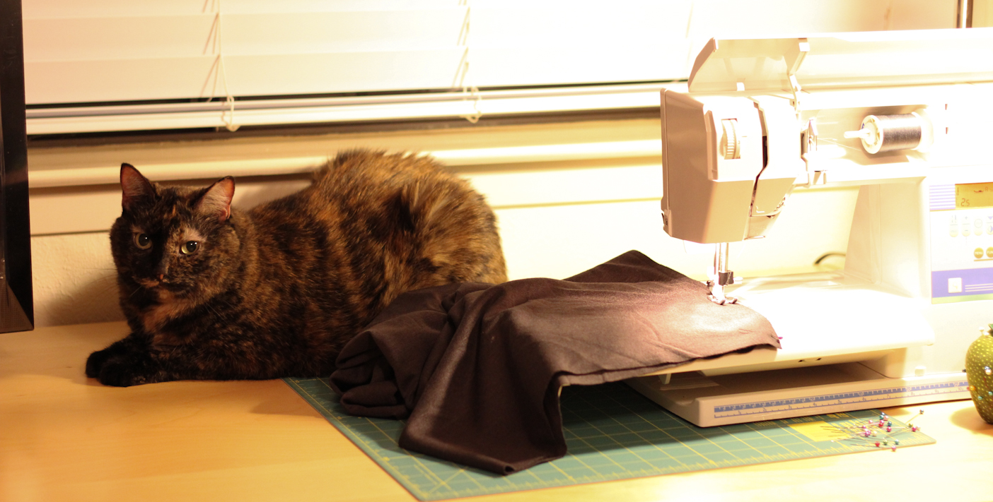Annie the cat helps me sew. Or really just gets in the way.